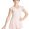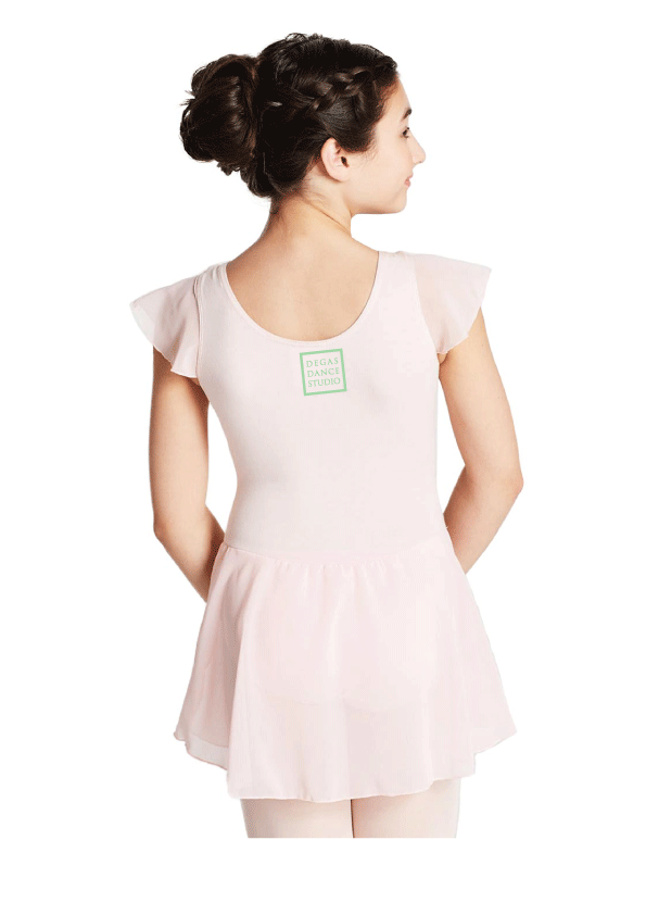 Star-studded dreams are inspired by the Flutter Sleeve Dress. Made of a soft cotton and spandex blend, this beautiful dress is comfortable and elegant. To ensure modesty and a seamless fit, the dress features a full front lining, while its single layer attached skirt adds to its graceful movement. The scoop front and back, along with pleats at the front neck, lend a modern touch to this wondrous creation. With the ballet leg line, the dress embraces the body, staying in place during even the most intricate dance routines. Available in child sizes only.